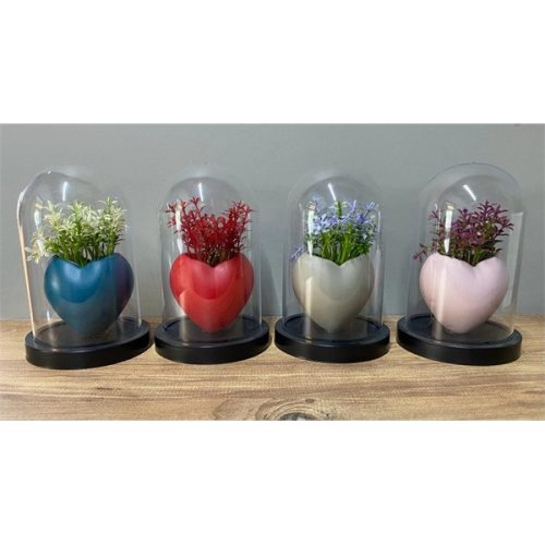IRIS E5752 szív alakú dekoráció művirággal búrában 10x18cm