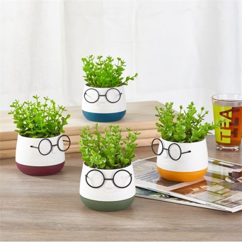 IRIS E5720 szemüveges fej dekoráció művirággal kétszínű cserépben 9x14cm