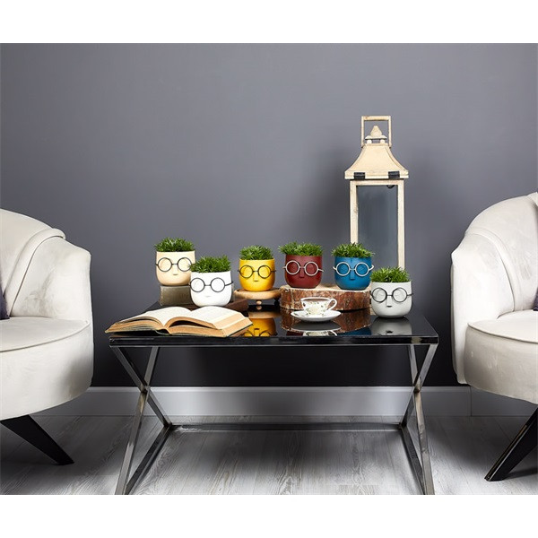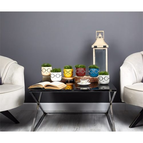 IRIS E5670 szemüveges fej dekoráció művirággal egyszínű cserépben 10x14cm