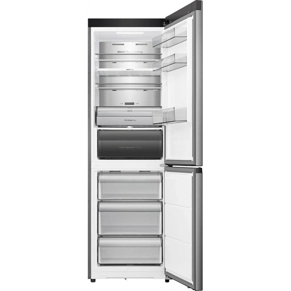 A hűtő hátsó fala rozsdamentes acélborítást kapott, amely biztosítja, hogy a hideg levegő belülről kifelé egyenletesen oszoljon el. A fejlett technológiai kombináció mindig ideális hőmérsékletet garantál, miközben megakadályozza a hideg levegő elvesztését és a dérképződést a hűtőben.