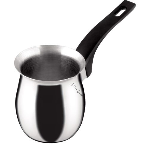 Dzsezva hagyományos török vagy görög kávé készítéséhez kiváló minőségű rozsdamentes acélból. Stílusos kivitel, ergonomikus bakelit fogantyú. Tölcsér. FIGYELEM: a termék 3 részből áll - edény, fogantyú és csavar. Kicsomagolás után a fogantyút hozzá kell csavarozni. A folyadékot a dzsezva ¾ részéig töltse. Legyen óvatos a főzés során, az edény forró lesz, kezeléshez mindig használja a fogantyút.