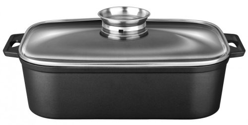Az SBR-3 pörkölő izesítővel kiváló minőségű sütő- és tálaló edény. Ellenálló és tartós, öntött alumíniumból, praktikus aromatizátorral ellátva a fedélben. A megoldás lehetővé teszi az edény belsejében lévő folyadékok kényelmes feltöltését a fedél eltávolítása nélkül. Sütés közben adjon húslevest, bort vagy más ízletes adalékot kedvenc ételéhez. Az ízesítőnek köszönhetően nem veszítjük el a megfelelő hőmérsékletet a sült serpenyőben, és nem csökkentjük az égési sérülések kockázatát.