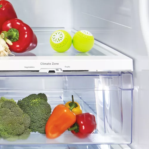 Ha Önt is gyakran megcsapják kellemetlen szagok a hűtő kinyitásakor, itt a megoldás! Ezeknek az öko golyóknak köszönhetően sokáig jó illatú marad a hűtőszekrény. A golyók belsejében aktív szenet, káliumot és magnéziumot tartalmazó zacskó van, melyek magukba szívják és semlegesítik a kellemetlen szagokat, ugyanakkor segítenek frissen tartani a hűtőszekrénybe helyezett zöldségeket, gyümölcsöket.