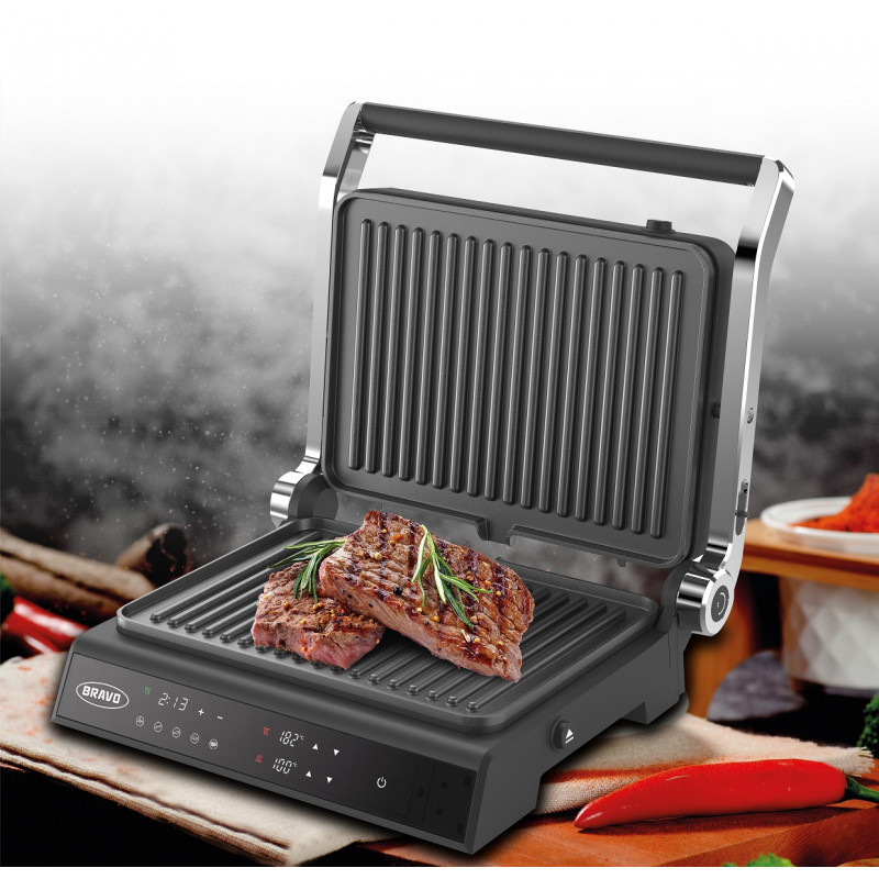 Digitális kontakt elektromos grill tartós tapadásmentes grillfelületekkel. Állítható termosztát.