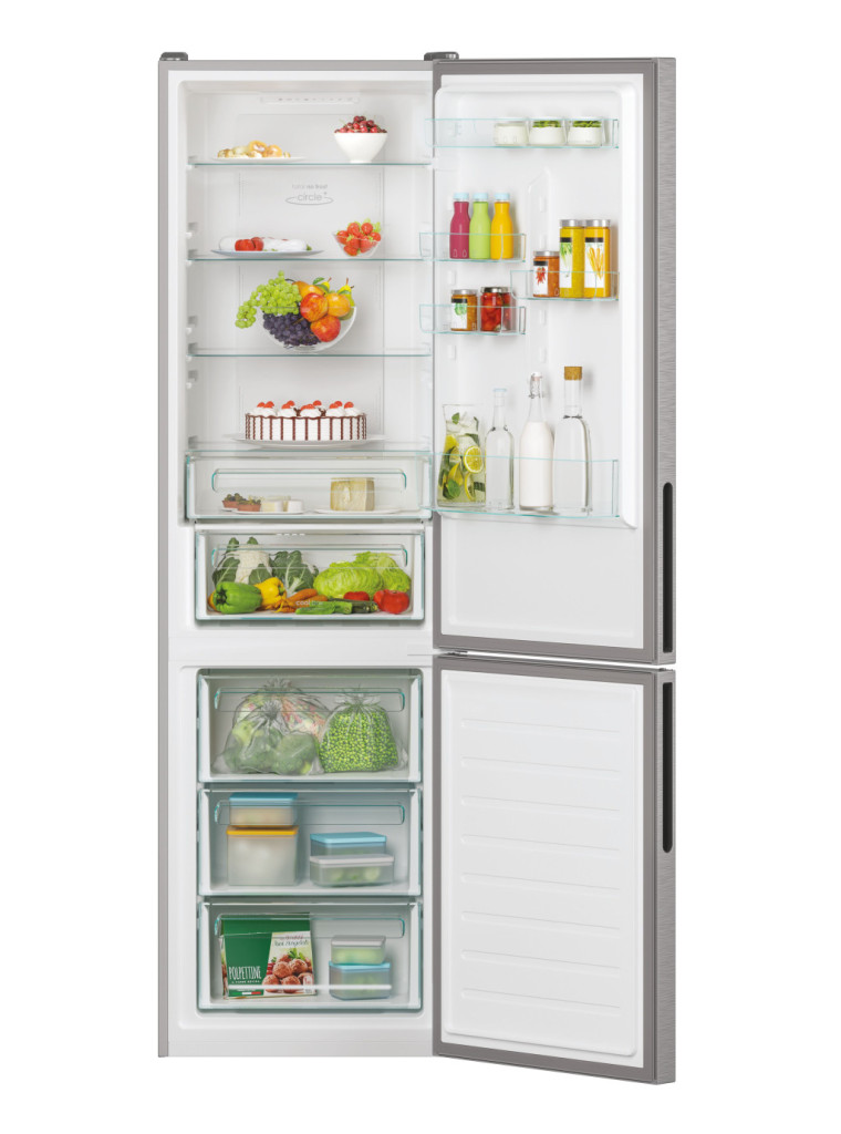 A Total No Frost Circle + technológiának köszönhetően az állandó és homogén hőmérséklet, valamint a páratartalom garantált hűtőszekrénye minden polcán és sarkán. Az oldalsó légáramlás, amely az oldalsó nyílásokból érkezik, hosszabb ideig frissen tartja az ételt, bárhol tárolja is azt a hűtőszekrényen belül.