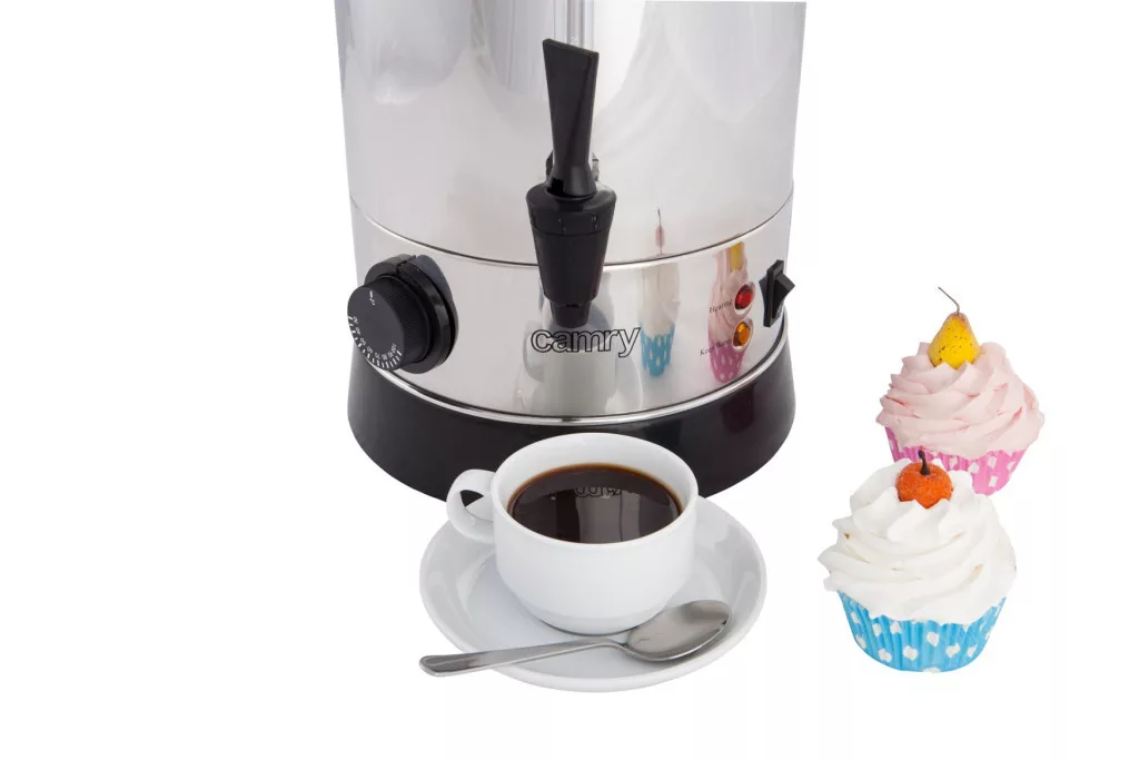 A CR1267 nem csak a nagy mennyiségű tea forralását biztosítja, de képes azt melegen is tartani. Tökéletes választás munkahelyekre, irodákba, valamint olyan rendezvényekre, ahol sok ember megfordul. Főbb jellemzők: Kapacitás: 8.8 liter Rozsdamentes acél Hőszabályozás 30-100 celsius fokig Hidegfogantyúk Teljesítmény: 950W, 220-240V ~50H