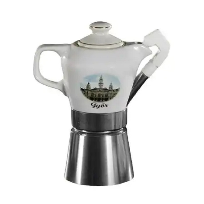 ‘- 2-4 csésze kávé főzésére alkalmas– Minta: Györ– Anyaga: alumínium, porcelán