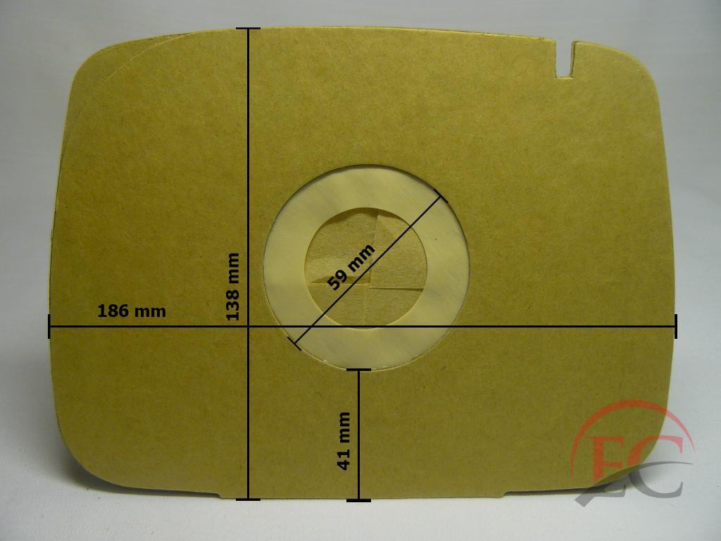 Lyuk átmérő: 59mmLyuk távolság: 38mmMagasság: 138mmSzélesség: 186mmZsák hosszúság: 206mmZsák magasság: 100mmZsák szélesség: 154mm