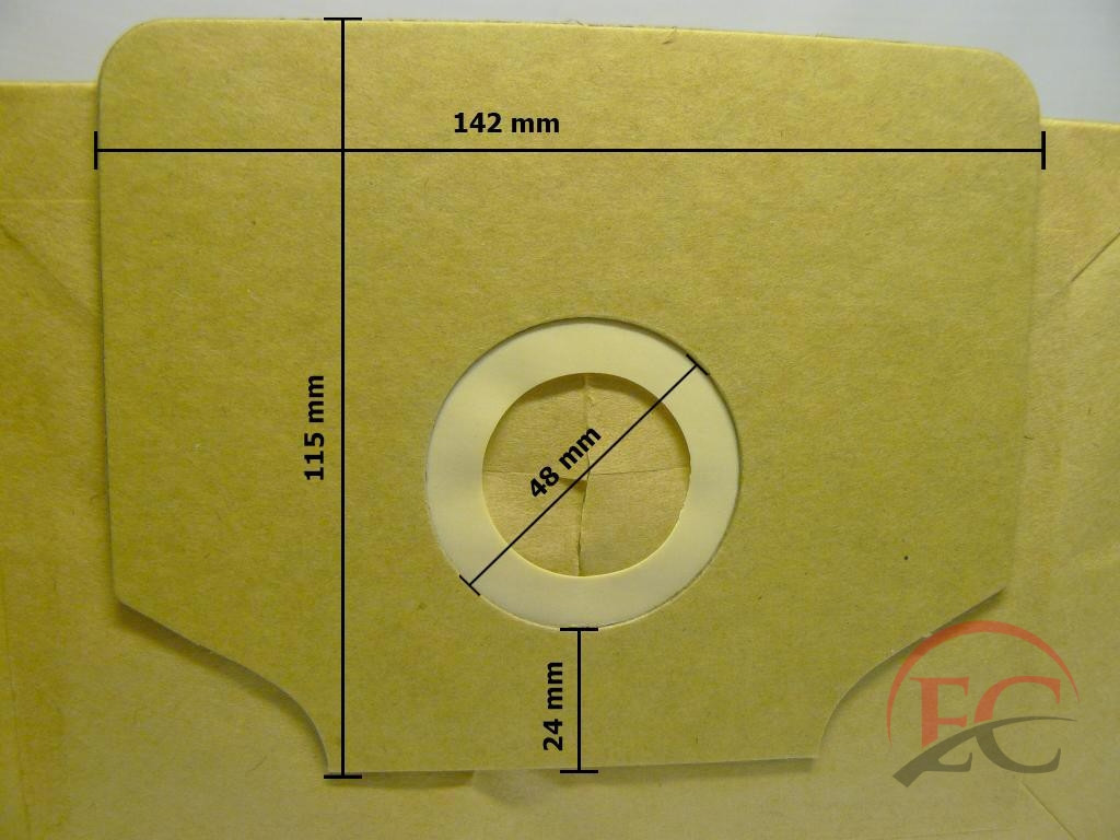 Lyuk átmérő: 48mmLyuk távolság: 42mmMagasság: 115mmSzélesség: 142mmZsák hosszúság: 231mmZsák magasság: 140mmZsák szélesség: 211mm