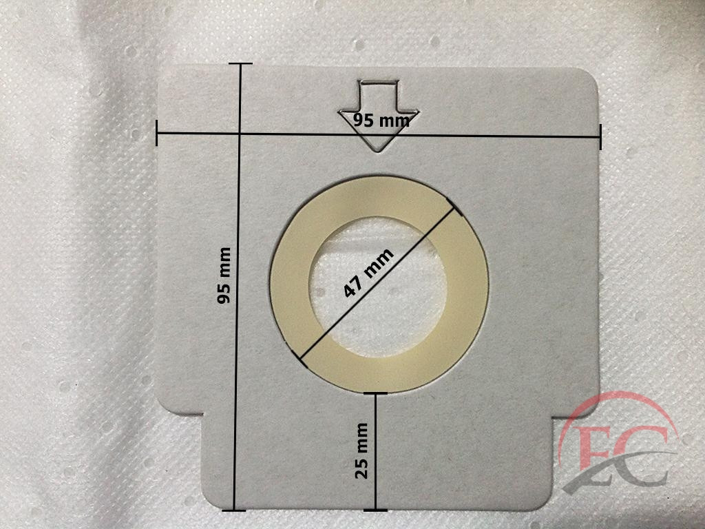 Lyuk átmérő: 47mmLyuk távolság: 25mmMagasság: 95mmSzélesség: 95mmZsák hosszúság: 365mmZsák szélesség: 565mm