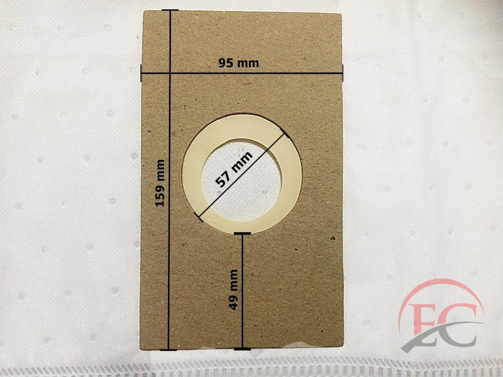 Lyuk átmérő: 57mmLyuk távolság: 49mmMagasság: 159mmSzélesség: 95mmZsák hosszúság: 370mmZsák szélesség: 615mm