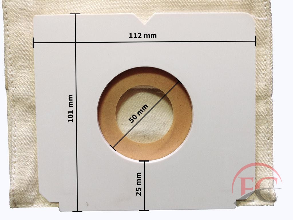 Lyuk átmérő: 50mmLyuk távolság: 25mmMagasság: 101mmSzélesség: 112mmZsák hosszúság: 180mmZsák szélesség: 140mm