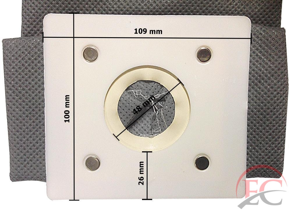 Lyuk átmérő: 48mmLyuk távolság: 26mmMagasság: 100mmSzélesség: 109mmZsák hosszúság: 155mmZsák magasság: 80mmZsák szélesség: 150mm