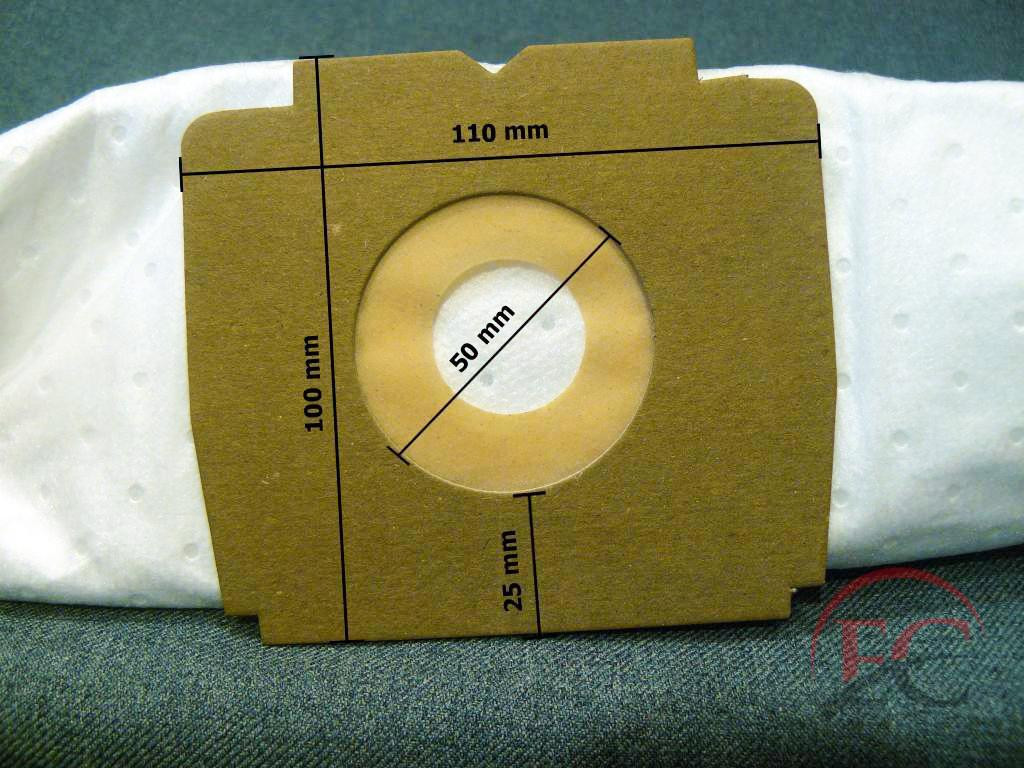 Lyuk átmérő: 50mmLyuk távolság: 24mmMagasság: 100mmSzélesség: 110mmZsák hosszúság: 305mmZsák szélesség: 290mm