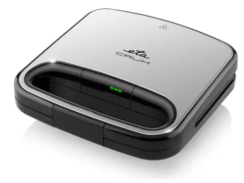 ETA Crux 3163 90000, fekete/rozsdamentes acél Az ETA Crux 3163 90000 szendvicssütő az ízletes pirítósok és töltött szendvicsek szerelmeseinek készült. A750 W fogyasztásnak köszönhetően soha nem kell sokáig várnia a készülék felmelegedésére. A szendvicssütő akár négy háromszöget is készíthet egyszerre. Az Ön és az egész konyha biztonságát védő hőbiztosíték és hőszigetelt fogantyú biztosítja, amellyel biztos lehet benne, hogy nem égeti meg magát az ETA Crux szendvicssütő kezelése során . A csúszásmentes lábak pedig stabilitást biztosítanak a munkafelületen.   Főbb jellemzők: A nagy, 750 W-os energiafogyasztás gyorsan felmelegíti a munkalapokat Tapadásmentes kezelés az egyszerű használat és tisztítás érdekében Automatikushőmérsékletszabályozás, amely lehetővé teszi a szendvicsek egyszerű elkészítését Védő hőbiztosíték a biztonságos működés érdekében Fényjelzés a működésről és az elért hőmérsékletről  Az ETA Crux szendvicssütő pillanatok alatt elkészíti kedvenc szendvicseit!   Gyors, egyszerű és biztonságos A teljes előkészítési folyamatról a működés és a fűtésfényjelzésével kap tájékoztatást. Az ETA Crux szendvicssütő szintén fel van szerelve automatikus hőmérséklet-szabályozással, amely mindig biztosítja a tészta ideális és egyenletes pirítását mindkét oldalon.  < / p> Tulajdonságok Szendvicssütő* Szendvicssütő (háromszögletű lapok)* Tapadásmentes lapok* Működési és hőmérséklet elérési fényjelző* Túlmelegedésgátló* Hőszigetelt fogantyú* Tápkábel hossza 0,85 m* Teljesítmény 750 W Besorsolás nélkül:Szendvics száma / formája: 4 háromszögMűködési fényjelző: IgenMegfelelő hőmérséklet fényjelzője: IgenTeljesítményfelvétel: 750 WSzín: alumíniumCserélhető elemek: NemKivitel: 1 funkcióGarancia: 24 hónap Termék méretei:Szélesség: 23.0 cmMagasság: 8.5 cmHosszúság: 23.0 cmTömeg: 1.43 kg Doboz méretei:Szélesség: 26.0 cmMagasság: 25.0 cmHosszúság: 12.0 cmTömeg: 1.63 kg