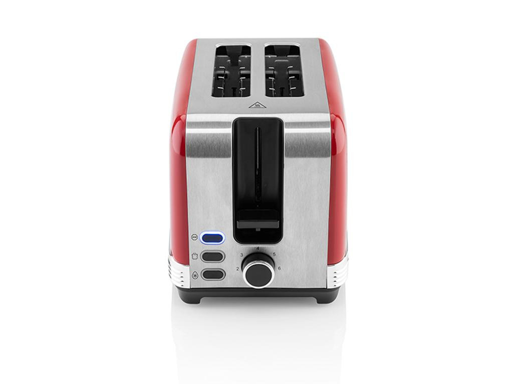 Praktikus konyhai segítő eredeti piros retro stílusban. Meleg ételeket gyorsan elkészíthet vele, 930 W teljesítményfelvételének köszönhetően. Az ETA Storio kenyérpirítóval 2 szeletet egyszerre elkészíthet és hét fokozatos szabályozást használhat.Aranybarna pirítós A mindkét oldalról történő pirítás mindig nagyszerű eredményt biztosít és szükség szerint, a STOP gombbal azonnal leállítható. Az ETA STORIO kenyérpirító kiolvasztás funkcióval is rendelkezik, így kényelmesen könnyen és gyorsan készíthet el fagyasztott péksüteményt is. Az újramelegítés funkcióval ezután könnyedén felmelegítheti a már elkészített pirítóst.Az ETA STORIO kenyérpirító alján egy kivehető morzsafiók található, melynek köszönhetően a kenyérpirító karbantartása egyszerű és időtakarékos lesz.