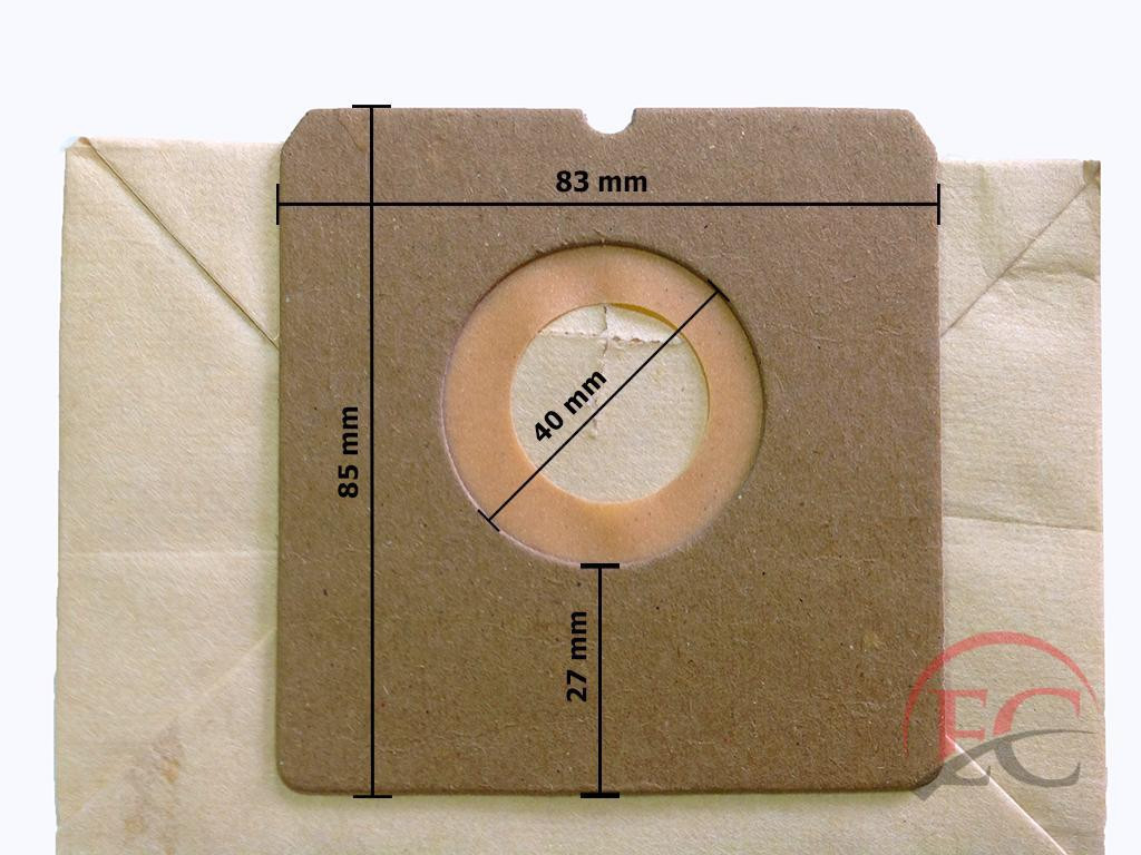 Lyuk átmérő: 40mmLyuk távolság: 27mmMagasság: 83mmSzélesség: 83mmZsák hosszúság: 170mmZsák magasság: 90mmZsák szélesség: 130mm