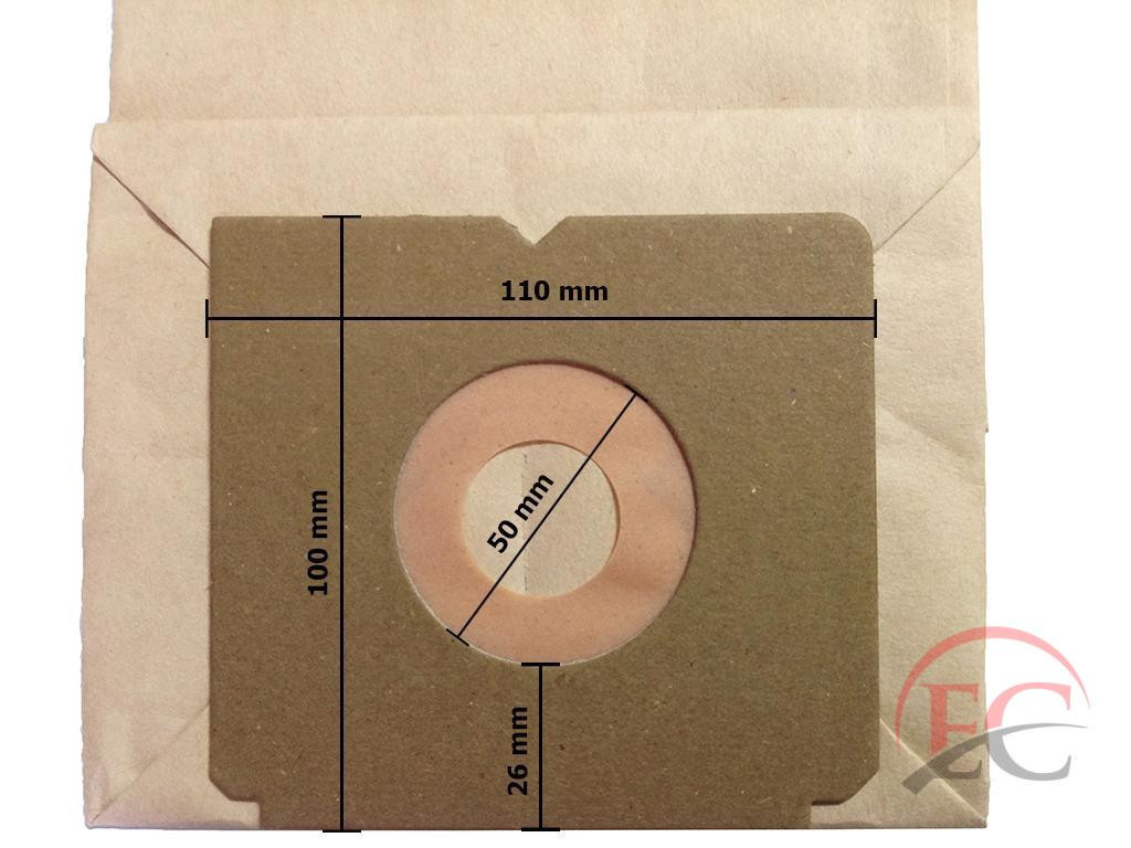 Lyuk átmérő: 50mmLyuk távolság: 26mmMagasság: 100mmSzélesség: 110mmZsák hosszúság: 190mmZsák magasság: 120mmZsák szélesség: 150mm