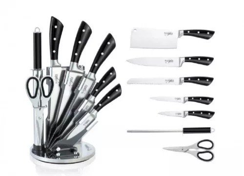 Platinum Collection 8 részes Professzionális késkészlet állvánnyal, fekete -fehér pöttyök - PL-S09B