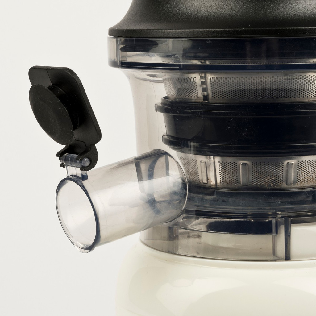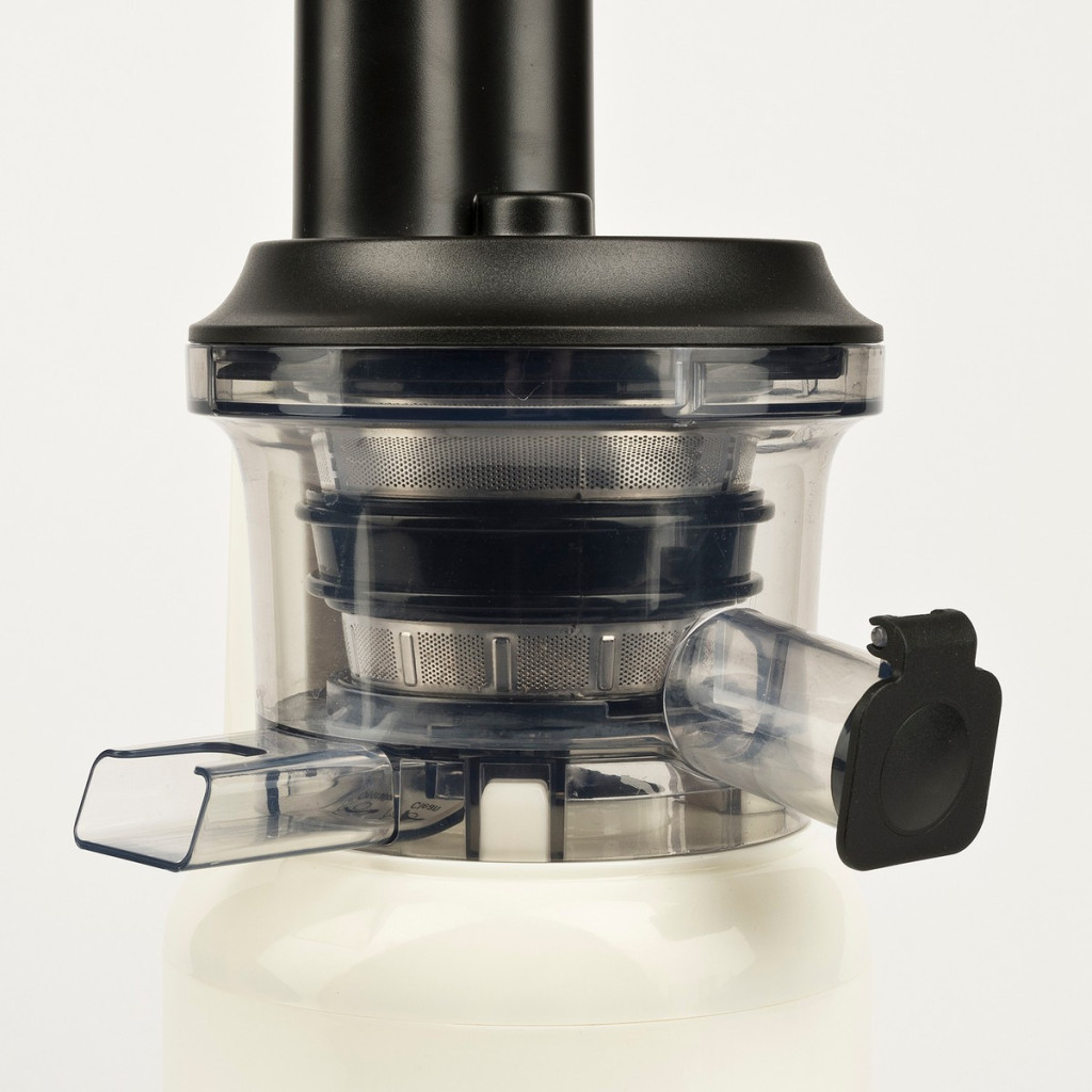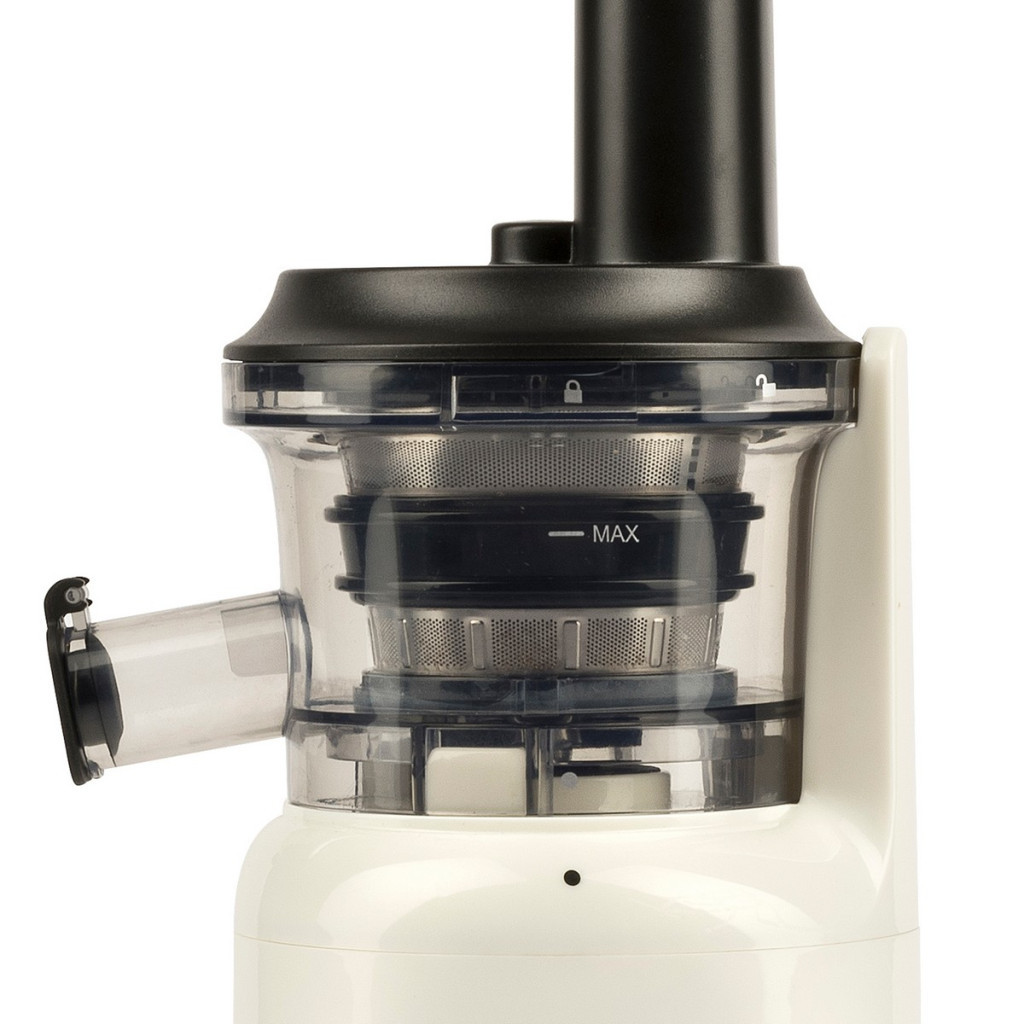 A készülék akár 30%-kal több levet nyer ki, mint a hagyományos centrifugák, és a különleges, mikroszűrős fém szűrőbetét rendkívül sima, sűrű állagú, habmentes gyümölcsleveket eredményez.