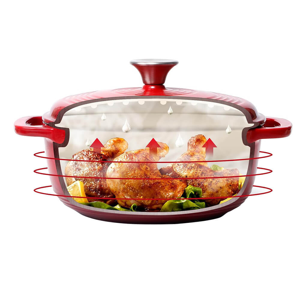 A kiváló hőmegtartó képesség révén az ételek egyenletesen főnek és sülnek. A zománcbevonat megakadályozza a rozsdásodást, emellett a sima belső felületnek köszönhetően kevésbé tapad le az étel, így a tisztítása is gyorsabb és könnyebb.