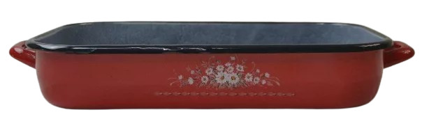 Family tepsi marványozott zománc piros füllel M:6,7CM SZ:18,5 CM H:28CM